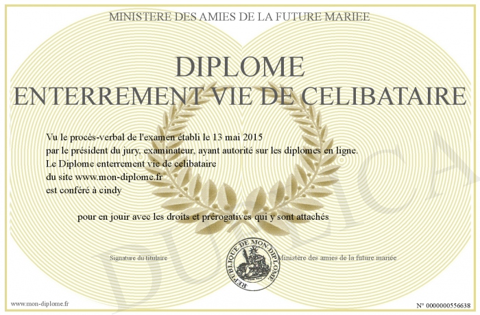Envoyez par email votre Diplôme enterrement vie de celibataire personalisé