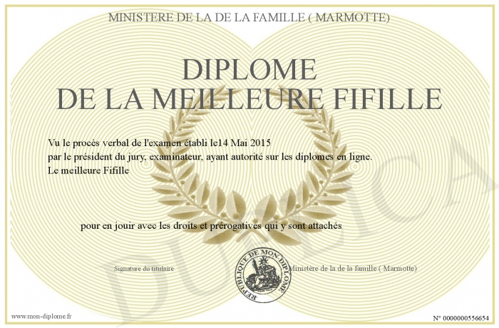 Envoyez par email votre Diplôme de la meilleure Fifille personalisé