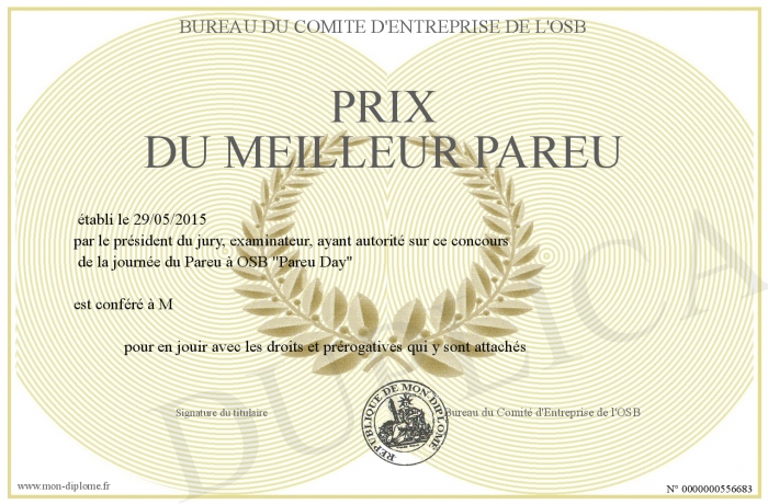 Envoyez par email votre Prix du meilleur PAREU personalisé