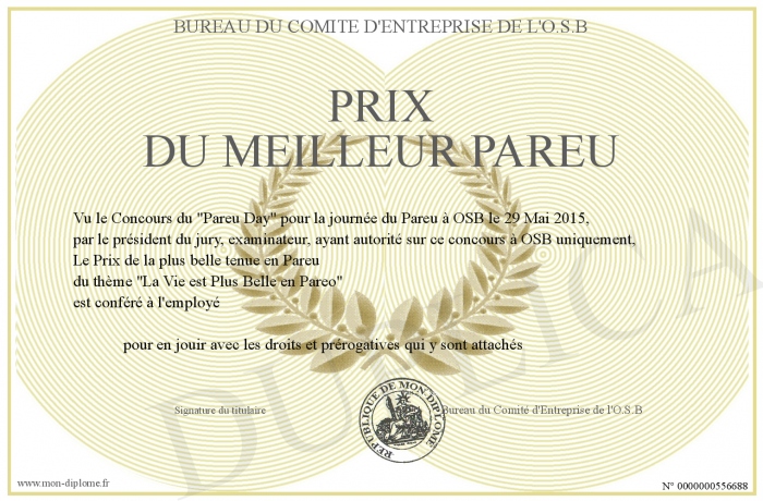 Envoyez par email votre Prix du meilleur Pareu personalisé