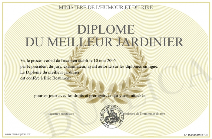 Envoyez par email votre Diplôme du meilleur jardinier personalisé