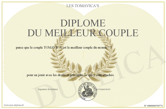Envoyez par email votre DIPLOME DU MEILLEUR COUPLE personalisé