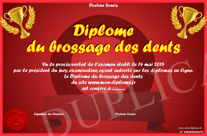Envoyez par email votre Diplôme du brossage des dents personalisé