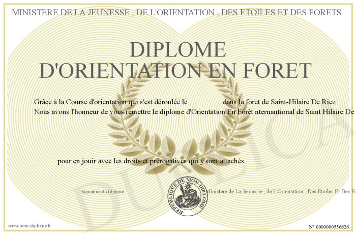 Envoyez par email votre DIPLOME d'Orientation en Foret personalisé