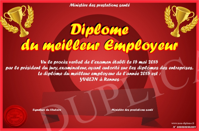 Envoyez par email votre Diplôme du meilleur Employeur personalisé