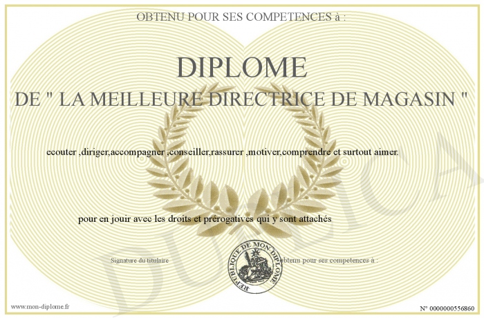 Envoyez par email votre Diplome de - la meilleure directrice de magasin - personalisé