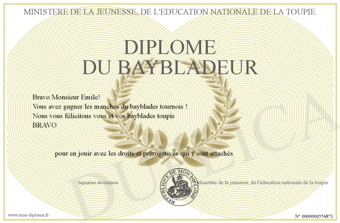 Envoyez par email votre Diplôme du baybladeur personalisé