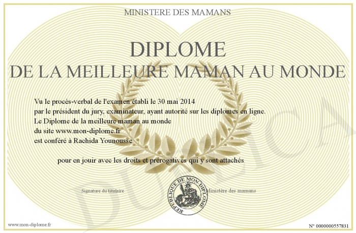 Envoyez par email votre Diplôme de la meilleure maman au monde personalisé