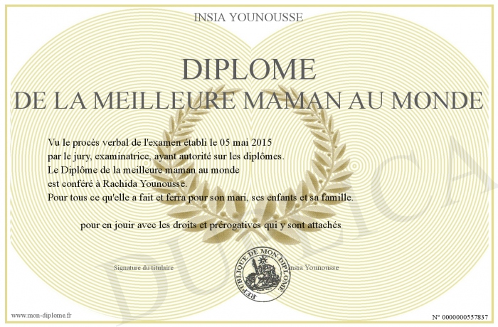Envoyez par email votre Diplôme de la meilleure maman au monde personalisé