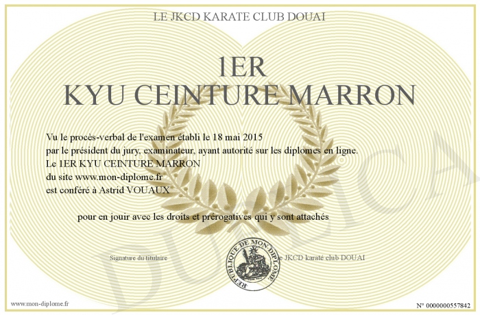 Envoyez par email votre 1ER KYU CEINTURE MARRON personalisé