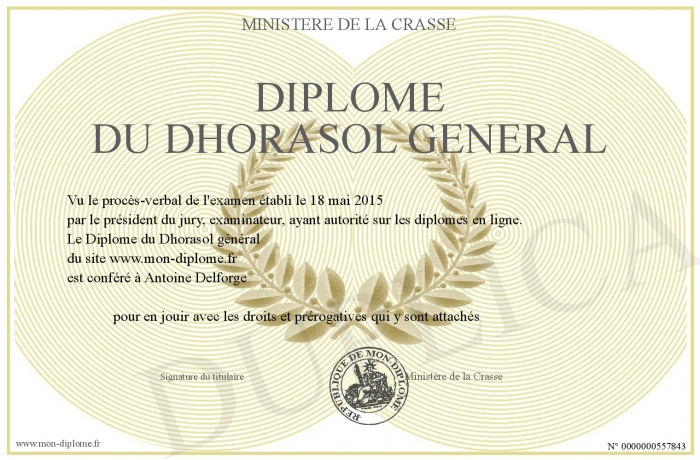 Envoyez par email votre Diplôme du Dhorasol général personalisé