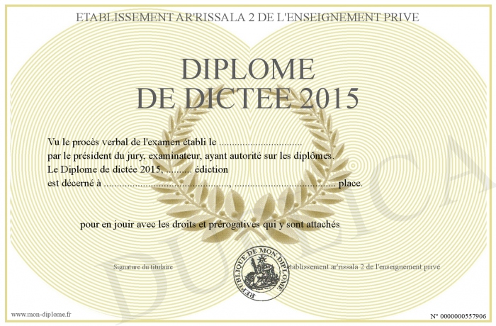 Envoyez par email votre Diplôme de dictée 2015 personalisé