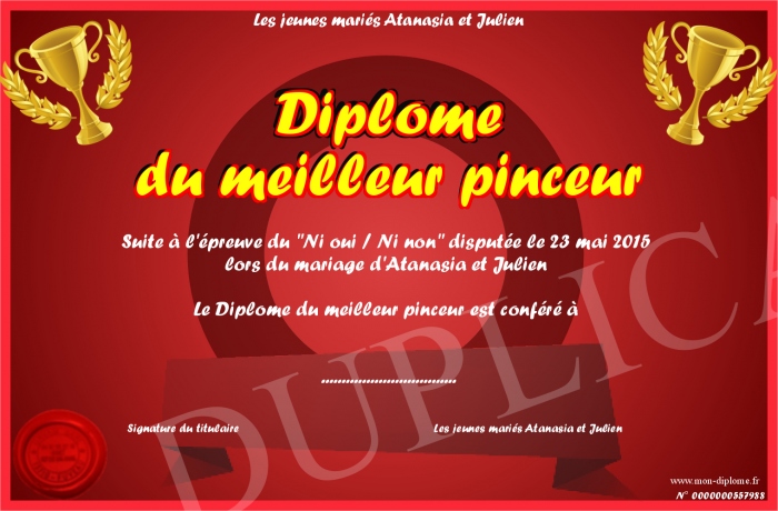 Envoyez par email votre Diplôme du meilleur pinceur personalisé