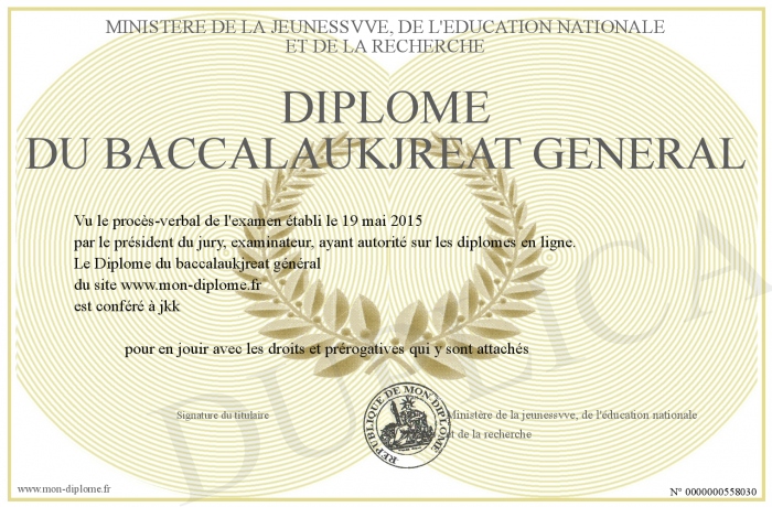 Envoyez par email votre Diplôme du baccalaukjreat général personalisé