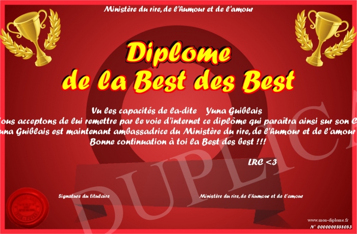 Envoyez par email votre Diplome de la Best des Best personalisé
