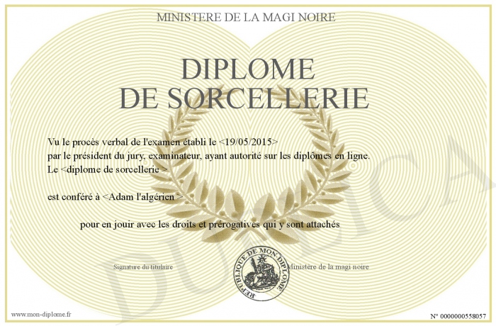Envoyez par email votre Diplôme de sorcellerie personalisé
