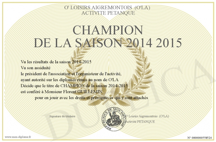 Envoyez par email votre Champion de la saison 2014 2015 personalisé