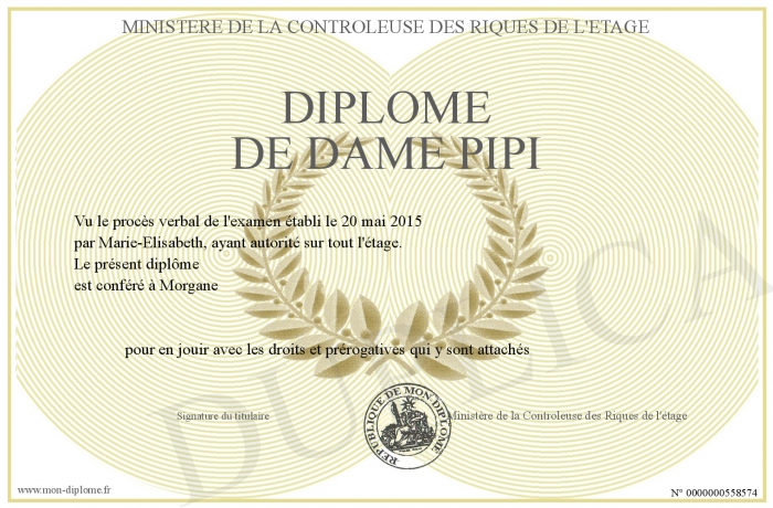 Envoyez par email votre Diplôme de Dame PIPI personalisé