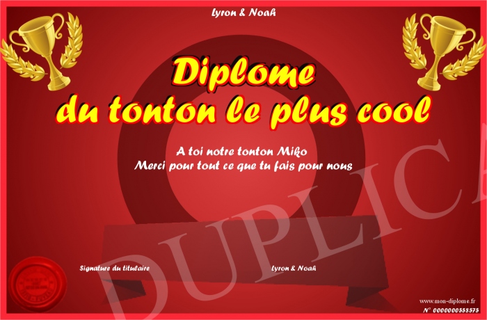 Envoyez par email votre Diplôme du tonton le plus cool personalisé