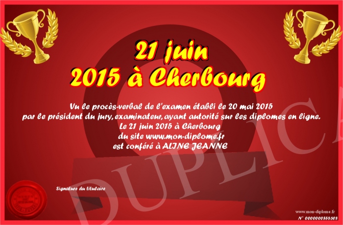 Envoyez par email votre 21 juin 2015 à Cherbourg personalisé