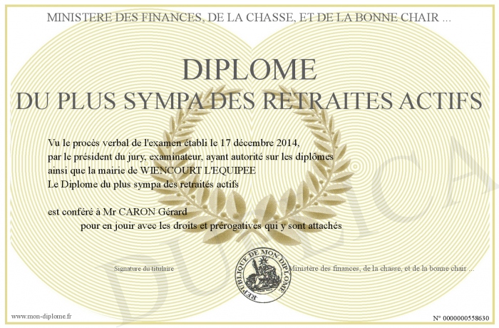 Envoyez par email votre Diplôme du plus sympa des retraités actifs personalisé