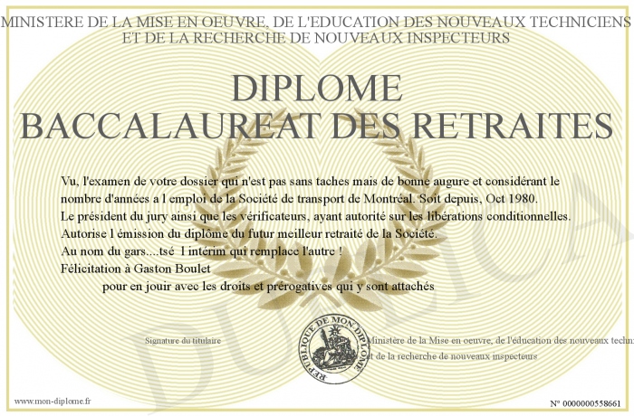 Envoyez par email votre Diplôme baccalaureat des retraités personalisé