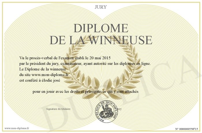 Envoyez par email votre Diplôme de la winneuse personalisé