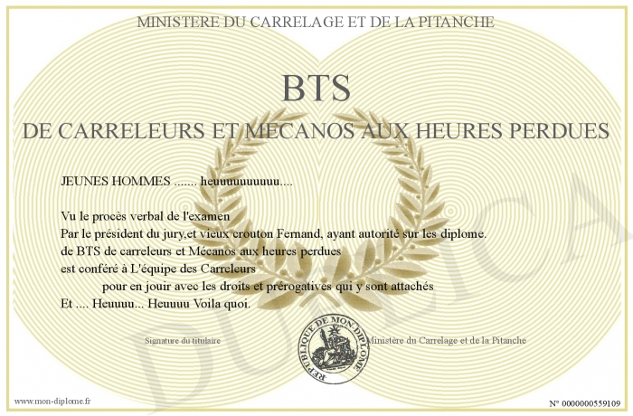 Envoyez par email votre BTS de carreleurs et Mécanos aux heures perdues personalisé