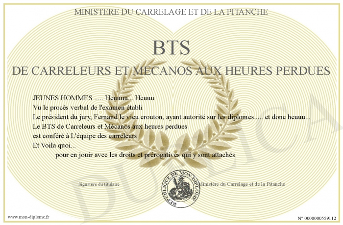 Envoyez par email votre BTS de Carreleurs et Mécanos aux heures perdues personalisé