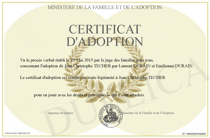 Envoyez par email votre CERTIFICAT D'ADOPTION personalisé