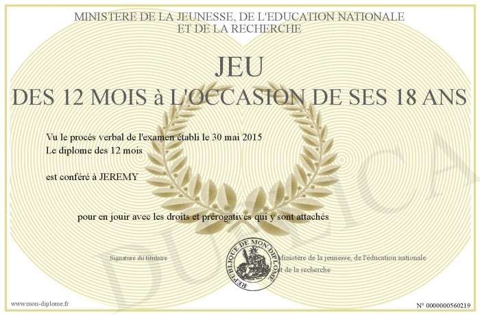 Envoyez par email votre Jeu des 12 Mois à l'occasion de ses 18 ans personalisé