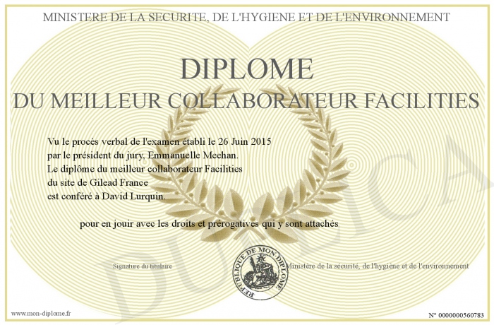 Envoyez par email votre Diplôme du meilleur collaborateur Facilities personalisé