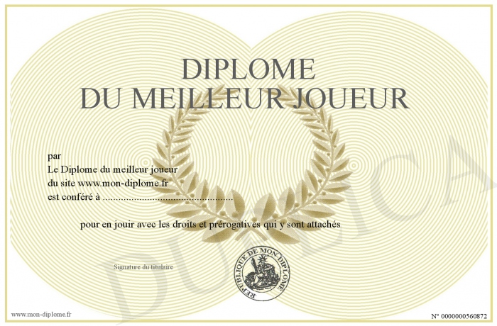 Envoyez par email votre Diplôme du meilleur joueur personalisé