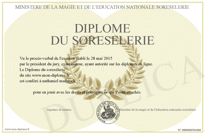 Envoyez par email votre Diplôme du soresélerie personalisé