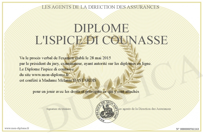 Envoyez par email votre Diplôme l'ispice di counasse personalisé