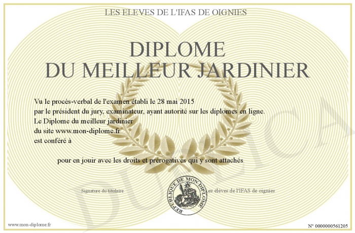 Envoyez par email votre Diplôme du meilleur jardinier personalisé