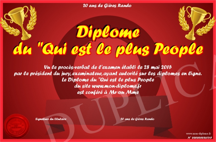 Envoyez par email votre Diplôme du -Qui est le plus People personalisé