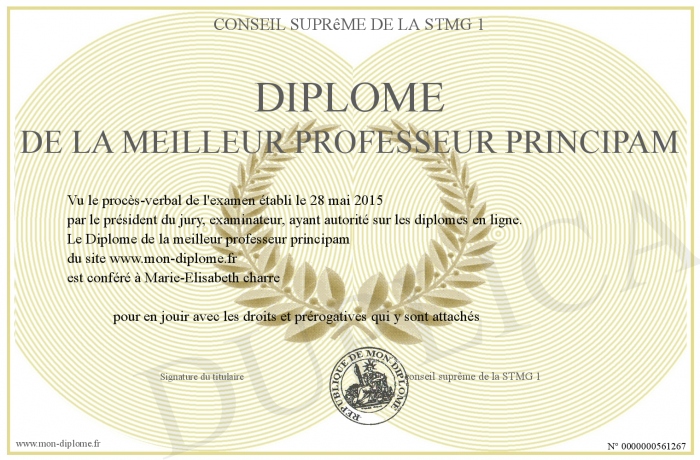 Envoyez par email votre Diplôme de la meilleur professeur principam personalisé