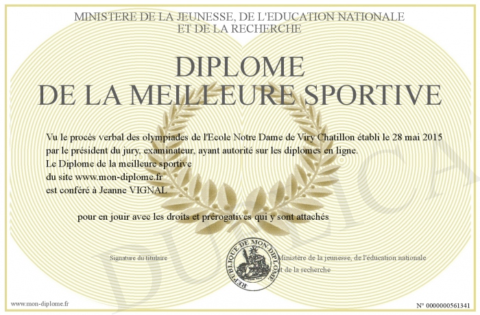 Envoyez par email votre Diplôme de la meilleure sportive personalisé