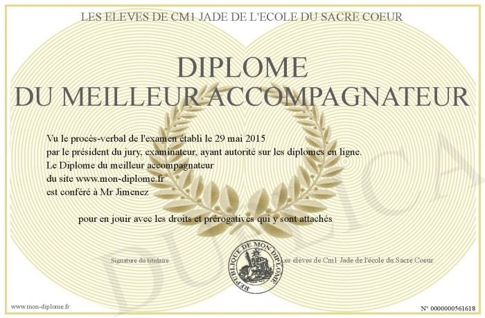 Envoyez par email votre Diplôme du meilleur accompagnateur personalisé