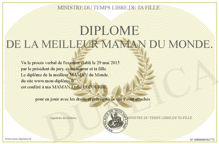 Envoyez par email votre Diplome de la meilleur maman du monde. personalisé