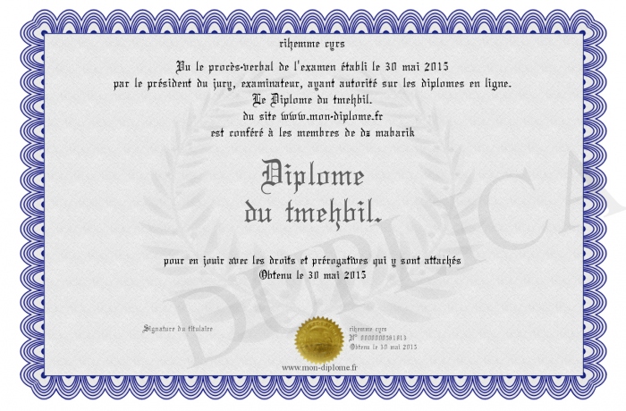 Envoyez par email votre Diplôme du tmehbil. personalisé