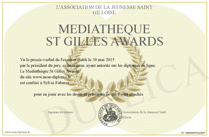Envoyez par email votre Mediathèque St Gilles Awards personalisé