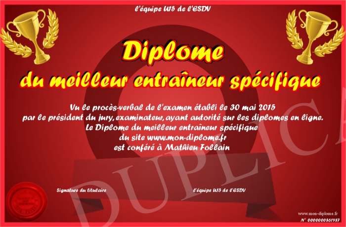 Envoyez par email votre Diplôme du meilleur entraîneur spécifique personalisé