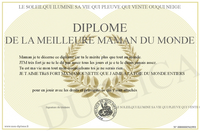 Envoyez par email votre DIPLOME DE LA MEILLEURE MAMAN DU MONDE personalisé