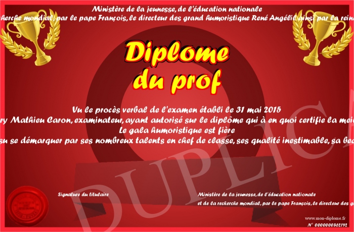 Envoyez par email votre Diplôme du prof personalisé