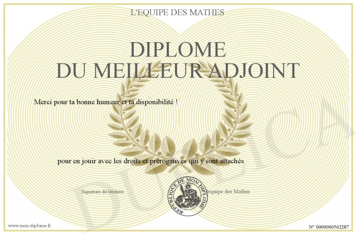 Envoyez par email votre Diplôme du MEILLEUR ADJOINT personalisé