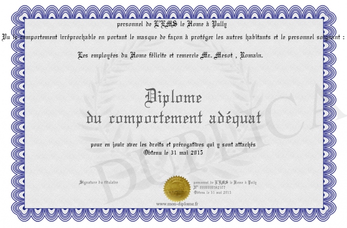 Envoyez par email votre Diplôme du comportement adéquat personalisé