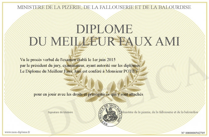 Envoyez par email votre Diplôme du Meilleur Faux Ami personalisé