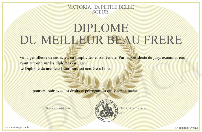 Envoyez par email votre Diplôme du meilleur beau frère personalisé